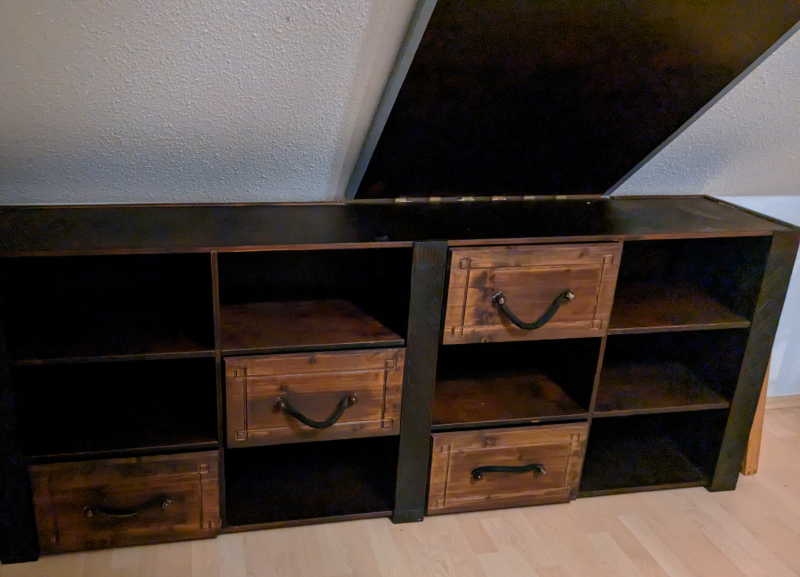 I know she didn't want drawers but I thought it would be cool to have something to hide things from plain sight. So I made some drawers without attachments, so she could put them wherever she wants them.
